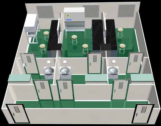 试剂和标本通过机械连锁不锈钢(不建议使用电子连锁方式)传递窗传递,保证试剂和标本在传递过程中不受污染(人物分流)。